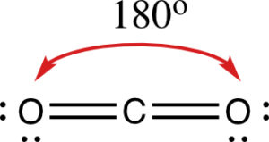 Carbon dioxide has a linear electron pair geometry and a linear molecular geometry. The bonds are 180o apart.