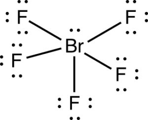 Bromine pentafluoride, BrF5 has an octahedral electron pair geometry, AX6. Because there is one lone pair of electrons on the Br, it has a square pyramidal molecular shape, AX5E.