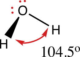Water has a tetrahedral electron pair geometry because it has 4 charge clouds — 2 bonds and 2 lone pairs of electrons. But, its molecular shape is bent, because two of the charge clouds are lone pairs. This is the case for all molecules and ions that are AX2E2. The bond angle is 104.5o. Note, the bond angles decrease with increasing lone pairs of electrons.