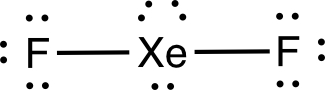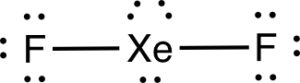 Xenon difluoride, XeF2, has a trigonal bipyramidal electron pair geometry. The three lone pairs of electrons are in equatorial positions. The molecular shape is linear. The VSEPR representation is AX2E3.