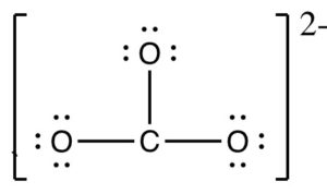 One issue arises when drawing the Lewis structures of some molecules and polyatomic ions. If we draw a Lewis structure for the carbonate ion, CO32-, the number of valence electrons is 24 electrons. We add two electrons because of the -2 charge on the ion. The skeletal structure is below.