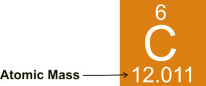 The atomic masses for all of the elements can be found on the periodic table. From the figure below, carbon has an atomic mass of 12.011 amu.